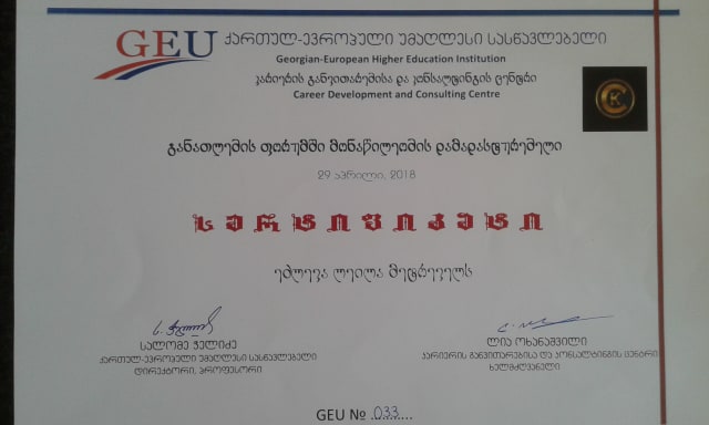ტრენინგებსა და კონფერენციებში მონაწილეობის დამადასტურებელი დოკუმენტები